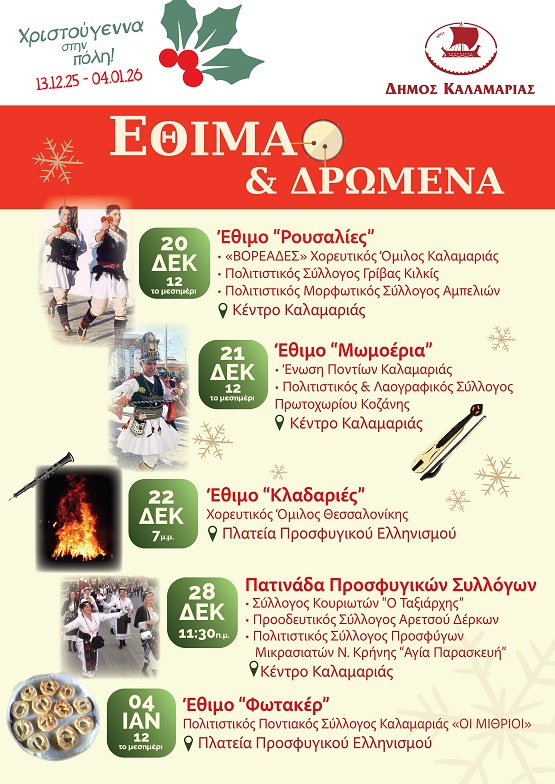 Η Καλαμαριά, τόπος μνήμης, παράδοσης και ζωντανής πολιτιστικής κληρονομιάς, φορά τα γιορτινά της και υποδέχεται τα Χριστούγεννα και την Πρωτοχρονιά μέσα από έθιμα που αντέχουν στον χρόνο και συνεχίζουν να ενώνουν τις γενιές.