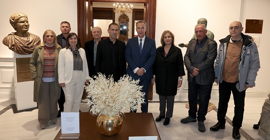 Στη φωτογραφία διακρίνεται η Αντιπροσωπεία της ΕΣΗΕΜ-Θ και του Μορφωτικού Ιδρύματός της στο Προξενείο της Ελλάδας στην Κωνσταντινούπολη, με τον γενικό πρόξενο, Πρέσβη Κωνσταντίνο Κούτρα.