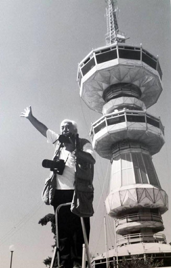 Στη φωτογραφία ο Γιάννης Κυριακίδης με φόντο τον Πύργο του ΟΤΕ.