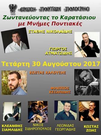 «Ζωντανεύοντας το Καρατάσιου, με μνήμες Ποντιακές», η Ένωση Ποντίων Πολίχνης, πραγματοποιεί το 8ο φεστιβάλ και προσκαλεί τα μέλη και τους φίλους του συλλόγου, αλλά και όλους τους κατοίκους της Θεσσαλονίκης και της Μακεδονίας να παραβρεθούν στις εκδηλώσεις.