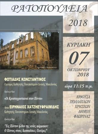 Εκδήλωση απονομής των υποτροφιών «Ρατοπούλεια 2018», σε μαθητές της Φλώρινας, θα γίνει την Κυριακή 7 Οκτωβρίου 2018, στην ακριτική πόλη της Δυτικής Μακεδονίας, και συγκεκριμένα στην αίθουσα πολλαπλών χρήσεων του δήμου Φλώρινας.