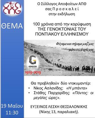 Ο Σύλλογος Αποφοίτων Αριστοτελείου Πανεπιστημίου Θεσσαλονίκης τιμά τη μνήμη των Ελλήνων Ποντίων -και των χριστιανικών λαών της Ανατολής- που υπέστησαν Γενοκτονία.
