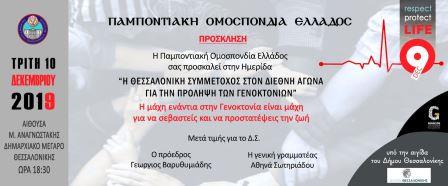 Ημερίδα στη Θεσσαλονίκη διοργανώνει η Παμποντιακή Ομοσπονδία Ελλάδος (ΠΟΕ) την Τρίτη 10 Δεκεμβρίου 2019, με θέμα «Η Θεσσαλονίκη συμμέτοχος στον διεθνή αγώνα για την πρόληψη των γενοκτονιών».