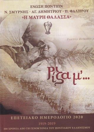 Το Επετειακό «Ημερολόγιο 2020», με αφορμή τα 100 χρόνια από τη Γενοκτονία του Ποντιακού Ελληνισμού, εξέδωσε η Ένωση Ποντίων Νέας Σμύρνης, Αγίου Δημητρίου, Παλαιού Φαλήρου «Η Μαύρη Θάλασσα», με τον γενικό τίτλο «Ρίζα μ’…».