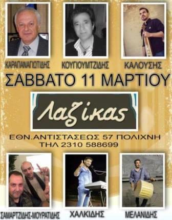 Με ένα γνήσιο ποντιακό γλέντι στον «Λαζίκα», το Σάββατο 11 Μαρτίου 2017, οι συντελεστές του, υπόσχονται σε εκείνους που θέλουν να ζήσουν μια βραδιά γεμάτη Πόντο, να παραβρεθούν και να απολαύσουν μια ξεχωριστή βραδιά.