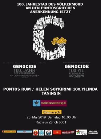 Είναι χαρακτηριστικό ότι η εκδήλωση διοργανώνεται στη Ζυρίχη της Ελβετίας, το Σάββατο 15 Μαΐου 2019, στις 4 το απόγευμα, με πρωτοβουλία Τούρκων πολιτών, οι οποίοι ζουν στην χώρα αυτή, με πρωτοργάτη τον ακτιβιστή Ταμέρ Τσιλιγκίρ, ο οποίος έκανε για πάνω από 10 χρόνια έγκλειστος στις τουρκικές φυλακές, και ήταν ο κεντρικός ομιλητής φέτος στην εκδήλωση μνήμης της γενοκτονίας την Κυριακή 19 Μαΐου 2019, στην πλατεία Συντάγματος, την οποία διοργάνωσε η Παμποντιακή Ομοσπονδία Ελλάδος.