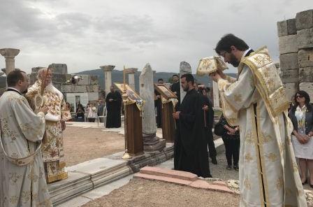 Με μία συμβολική κίνηση ο Οικουμενικός Πατριάρχης Κωνσταντινουπόλεως κ.κ. Βαρθολομαίος, την περασμένη Δευτέρα προεξήρχε στην Πατριαρχική Θεία Λειτουργία στη μνήμη του Αποστόλου και Ευαγγελιστή Ιωάννη του Θεολόγου, στην παλαιοχροστιανική βασιλική της Εφέσου, επί του τάφου του Αγίου, ενώ την Κυριακή το χοροστάτησε στον Εσπερινό, στον ναό του Αγίου Ιωάννη του Προδρόμου, στο ορεινό χωριό της Εφέσου, τον Κιρκιντζέ, που έγινε γνωστός στο πανελλήνιο και όχι μόνο από τη βιβλίο «Ματωμένα Χώματα» της συγγραφέως Διδώς Σωτηρίου.