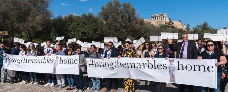Μέρος των εργασιών του Φόρουμ των απανταχού νέων Ελλήνων «Hellenic Youth in Action», το οποίο έγινε στην Αθήνα, το Σαββατοκύριακο 31η Μαρτίου με 1η Απριλίου 2018, η εκστρατεία #bringthemarbleshome κορυφώθηκε με μία πορεία από το Ζάππειο Μέγαρο προς τον ιερό λόφο της Πνύκας, αιώνιο σύμβολο της αρχαίας αθηναϊκής δημοκρατίας.