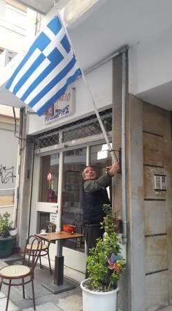 Στο καφενείο του τέλος, σήμερα ανήμερα της εθνικής μας γιορτής, κυματίζει η ελληνική σημαία! Την ίδια στιγμή που ψάχνεις με το κυάλι στα μπαλκόνια της ελληνικής μεγαλούπολης να βρεις σημαία, στα δε μεγάλα και in μαγαζιά, που σήμερα ξεπουλάνε μπακαλιάρο και οι θαμώνες τους υπό τον ήχο των διπλοπενιών και τα μεράκια του τσίπουρου και του κρασιού βροντοφωνάζουν "ζήτω η Ελλάδα!", δεν υπάρχει όχι αληθινή σημαία, αλλά ούτε σε φωτογραφία, ούτε καν εκτυπωμένη σε χαρτοπετσέτα, ο ...Ρωσοπόντιος την έχει βιτρίνα, φάτσα στο κουτούκι του από χθες, όπως κάθε χρόνο τέτοιες μέρες!..