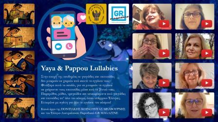 Ένα νέο κανάλι στο Youtube με την ονομασία «Yaya & Pappou Lullabies», το οποίο θα έχει παραμύθια και τραγούδια για τα εγγόνια που ζουν στην Αυστραλία, δημιούργησε η Ποντιακή Κοινότητα Μελβούρνης, σε συνεργασία με το περιοδικό GR MAGAZINE.