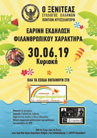 Για τέταρτη συνεχόμενη χρονιά, ο σύλλογος Ελλήνων Ποντίων Ντίσελντορφ και περιχώρων «Ο ΞΕΝΙΤΕΑΣ» στο πλαίσιο της κοινωνικής του προσφοράς και δράσης διοργανώνει την Κυριακή 30 Ιουνίου 2019 την καθιερωμένη εαρινή εκδήλωση φιλανθρωπικού χαρακτήρα.