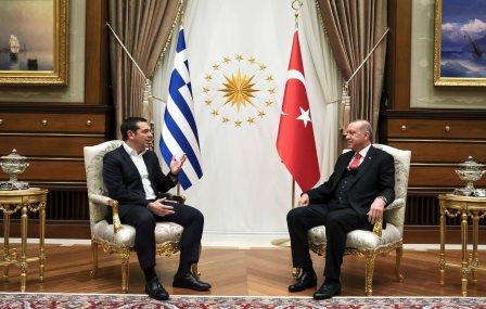 Τη διάθεση για διάλογο και συνεργασία, αλλά και αποκλιμάκωση της έντασης στο Αιγαίου, το θέμα των οκτώ στρατιωτικών που βρίσκονται στην Ελλάδα, αλλά και τα δικαιώματα της ελληνορθόδοξης μειονότητας, το θέμα της επαναλειτουργίας της Θεολογικής Σχολής της Χάλκης, αλλά και ζητήματα που έχουν να κάνουν με τους Κωνσταντινουπολίτες, το θέμα της μουσουλμανικής μειονότητας στη Θράκη, συζήτησαν ο Έλληνας Πρωθυπουργός Αλέξης Τσίπρας με τον Τούρκο Πρόεδρο Ρετζέπ Ταγίπ Ερντογάν, κατά τη διάρκεια της συνάντησης στο Προεδρικό Μέγαρο στην Άγκυρα το απόγευμα της Τρίτης 5 Φεβρουαρίου 2019.