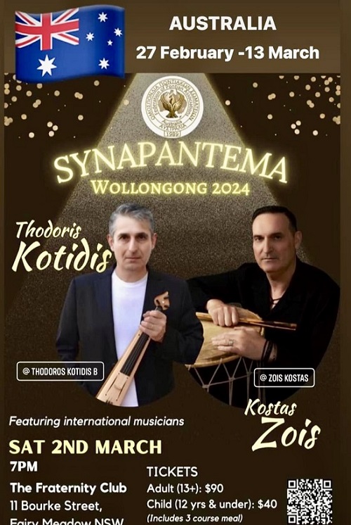 Για την Αυστραλία αναχωρούν ο Θοδωρής Κοτίδης και ο Κώστας Ζώης προσκεκλημένοι της Ομοσπονδίας Ποντιακών Συλλόγων Αυστραλίας συμμετέχοντας στο συναπάντημα που θα πραγματοποιηθεί την Παρασκευή 1 το Σάββατο 2 και Κυριακή 3 Μαρτίου 2024 στο WOLLONGONG κοντά στην πόλη του Σίδνεϊ.