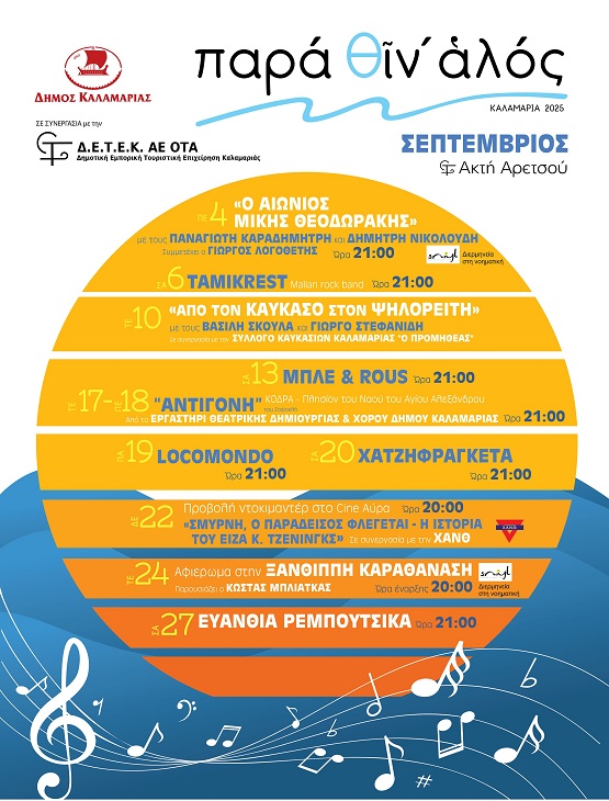 Ο πιο ιστορικός πολιτιστικός θεσμός της Καλαμαριάς, το «Παρά θιν’ αλός», επιστρέφει φέτος με ένα πλούσιο πρόγραμμα συναυλιών, παραστάσεων και ξεχωριστών βραδιών, φέρνοντας την τέχνη και το κοινό δίπλα στη θάλασσα, ενώ παράλληλα συνδέει το Κόδρα με την πόλη. Το ομηρικό όνομα του θεσμού φέρνει στο προσκήνιο την έννοια της θάλασσας και της σύνδεσης με την πόλη, ενισχύοντας τον χαρακτήρα της Καλαμαριάς ως πολιτιστικού προορισμού.