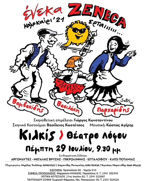 Όπως λένε και οι υπεύθυνοι του θεατρικού σχήματος, “Ένεκα Zeneca” θα λέμε αυτό το καλοκαίρι και θα κλαίμε από τα γέλια. Ο σεναριογράφος Δημήτρης Πιπερίδης δεν θα μπορούσε να μείνει άπραγος μπροστά στην πρόκληση της εποχής. Επιστρέφει μετά την σκληρή καραντίνα που βίωσε ο πολιτισμός με μια ποντιακή θεατρική παράσταση που θα σας κάνει να κλαίμε από τα γέλια, που τόσο στερηθήκαμε τον τελευταίο καιρό.