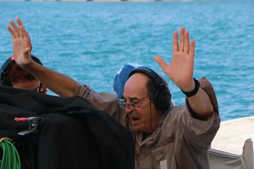 Στιγμιότυπο από τα γυρίσματα της σειράς "Το Κόκκινο Ποτάμι" με τον σκηνοθέτη Μανούσο Μανουσάκη, να δίνει οδηγίες. Δίπλα του ο συγγραφέας του βιβλίου "Το Κόκκινο Ποτάμι" Χάρης Τσιρκινίδης (Φωτογραφία: Φόρης Πεταλίδης)
