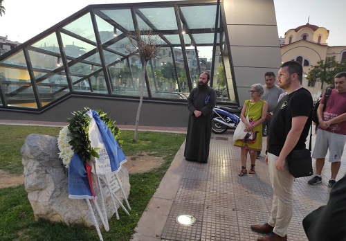 Στο τελευταίο σημείο της διαδρομής που ήταν η κεντρική Πλατεία της πόλης μας, η πλατεία «Ελευθερίου Βενιζέλου» (Αγίου Νικολάου), η υπεύθυνη δημοσίων σχέσεων του δήμου Νίκαιας – Αγίου Ιωάννη Ρέντη κα Νατάσα Χατζοπούλου, με αφορμή την επέτειο των 100 χρόνων από την Μικρασιατική Καταστροφή, κάλεσε τον Πρόεδρο της Ένωσης Ποντίων Νίκαιας – Κορυδαλλού, κ. Θοδωρή Μακρίδη να κάνει την κατάθεση του στεφάνου εκ μέρους του Δήμου».