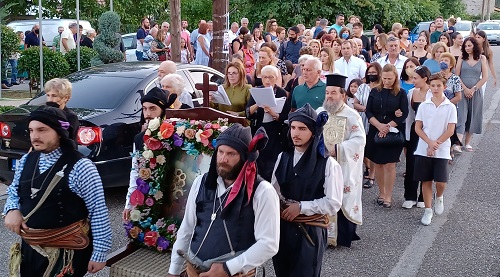 Μέλη του συλλόγου Ποντίων Μπαμπαλιού «Αξέχαστες Πατρίδες», ενδεδυμένοι με την ποντιακή φορεσιά «ζίπκα» κρατούσαν την εικόνα της Παναγίας σε όλην την λιτανεία.
