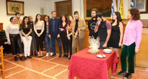 Ακολούθως και πριν από το κόψιμο της βασιλόπιτας, νέες και νέοι, της νεολαίας της Ευξείνου Λέσχης Θεσσαλονίκης, είπαν τα τα Πρωτοχρονιάτικα Κάλαντα, με τη συνοδεία της λύρας του Γιάννη Μυλωνά.