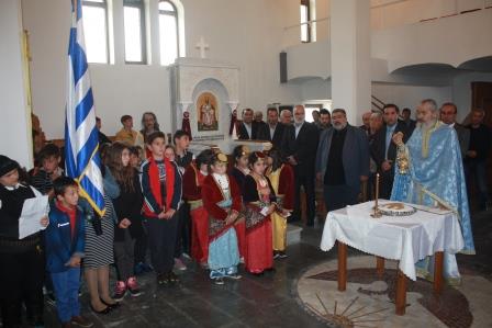 Οι μικροί μαθητές απήγγειλαν με τη συνοδεία της λύρας το ποίημα «Κάστρο άπαρτο ο Πόντος», χόρεψαν τραγουδώντας παράλληλα «σαράντα μήλα κόκκινα» και έκλεισαν τη μικρή αλλά συγκινητική τους παράσταση με το τραγούδι «Της Τρίχας το γεφύρ'».