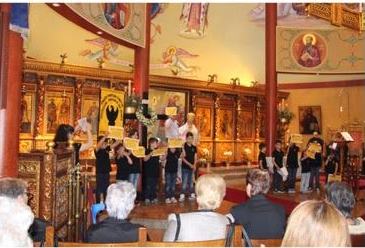 Στη διάρκεια της ομιλίας και της επιμνημόσυνης δέησης μικρά παιδιά του συλλόγου, κρατούσαν ένα πλακάτ σε τρεις γλώσσες με το σύντομο και περιεκτικό μήνυμα, πως ΔΕΝ ΞΕΧΝΟΥΜΕ, που υιοθέτησαν οι νέοι της δεύτερης παγκόσμιας συνδιάσκεψης νεολαίας.