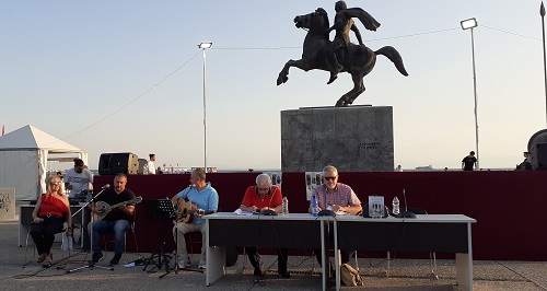 Την εκδήλωση συντόνισε ο πρόεδρος του συλλόγου αποφοίτων Ε’ Γυμνασίου Θεσσαλονίκη, Γιάννης Χατζόπουλος.