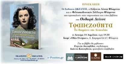 Το βιβλίο του Θοδωρή Δεύτου, «Τραπεζούντα. Το διαμάντι της Ανατολής», θα παρουσιαστεί την Δευτέρα 18 Απριλίου 2016, στις 19.30 το βράδυ, στο καφέ «Οδός Ονείρων», (Λ. Καραμανλή 67, Φλώρινα).