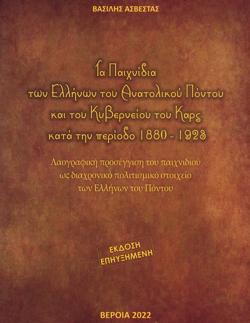 Το βιβλίο του Βασίλη Ασβεστά με τίτλο «Τα παιχνίδια των Ελλήνων του Ανατολικού Πόντου και του Κυβερνείου του Καρς κατά την περίοδο 1880 – 1923», και με επίτιτλο «Λαογραφική προσέγγιση του παιχνιδιού ως διαχρονικό πολιτισμικό στοιχείο», θα παρουσιαστεί από τον Σύλλογο Ποντίων Γιαννιστών, στο ιδιόκτητο κτήριό του την «Στέγη Ποντιακού Ελληνισμού».