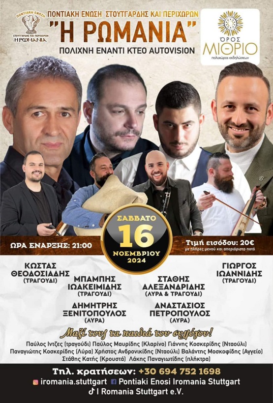 Σας περιμένουμε λοιπόν για μια αλησμόνητη βραδιά! Ολ' εντάμαν σον χορόν τη Ρωμανίας...