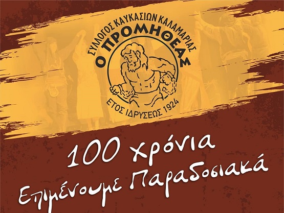 Ο Σύλλογος Καυκασίων Καλαμαριάς «Ο ΠΡΟΜΗΘΕΑΣ» σας προσκαλεί στην εορταστική εκδήλωση για τα 100 χρόνια από την ίδρυσή του και τα τριάντα από την επαναλειτουργεία του, το Σάββατο 9 Νοεμβρίου 2024 και ώρα 18:00 στο Θέατρο «Σταύρος Κουγιουμτζής», Χιλής 12 και Τριπόλεως Καλαμαριά.