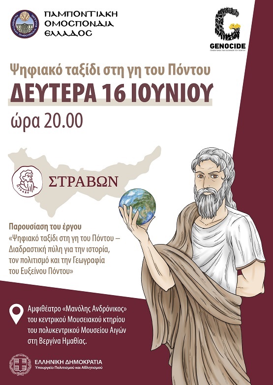 Την επίσημη παρουσίαση του έργο με τίτλο «Ψηφιακό Ταξίδι στη Γη του Πόντου – Διαδραστική πύλη για την ιστορία, τον πολιτισμό και την Γεωγραφία του Ευξείνου Πόντου», που συνιστά δράση ανάδειξης της μνήμης και ταυτότητας των προσφυγικών κοινοτήτων, θα παρουσιάσει η Παμποντιακή Ομοσπονδία Ελλάδος (ΠΟΕ) στο Μουσείο Αιγών στη Βεργίνα Ημαθίας το βράδυ της Δευτέρας 16 Ιουνίου 2025.