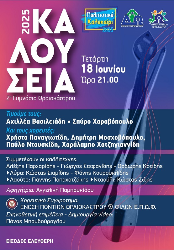 Το «Πολιτιστικό Καλοκαίρι 2025» του Δήμου Ωραιοκάστρου συνεχίζεται με τα «Καλούσεια», που φέτος διοργανώνονται για τέταρτη συνεχή χρονιά, αποτελώντας σημαντικό πολιτιστικό θεσμό.