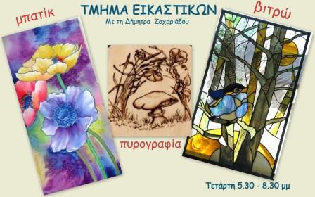 Ένα δείγμα των ποικίλων τεχνοτροπιών Τεχνική BATIK –Ζωγραφική στο μετάξι, Τεχνική πυρογραφίας -νωπογραφίας με τις εφαρμογές τους – και Βιτρώ θα έχουν την ευκαιρία να παρακολουθήσουν από κοντά οι ενδιαφερόμενες μαθήτριες των εικαστικών που θα βρεθούν την Τετάρτη 11 Οκτωβρίου 2017 στις 5.30 το απόγευμα στις εγκαταστάσεις της Ευξείνου Λέσχης Ποντίων Νάουσας.