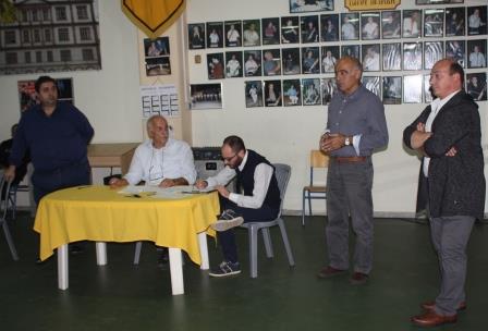 Ο ταμίας του ΣΠΟΣ Θεσσαλονίκης Ιωάννης Τελλίδης, διαβάζει τον οικονομικό απολογισμό και δίπλα του είναι ο πρόεδρος της συνέλευσης Χρήστος Πετανίδης και ο γραμματέας της συνέλευσης Χρήστος Κυριακίδης