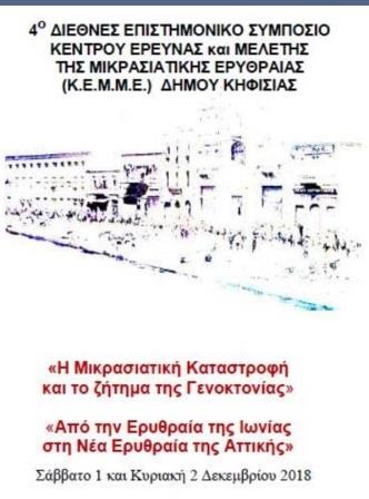 Επιστημονικό συνέδριο διοργανώνεται το Σάββατο 1 και την Κυριακή 2 Δεκεμβρίου 2018, στην Κηφισιά της Αττικής, με διοργανωτή το Κέντρο Μελέτης Μικρασιατικής Ερυθραίας (ΚΕΜΜΕ) του Δήμου Κηφισιάς, συνεχίζοντας μία παράδοση διεθνές συνεδρίων που άρχισε το 2012. Στο συνέδριο συμμετέχουν μεταξύ άλλων η Tessa Hofmann – Savvidis και η νέα ιστορικός από την Τουρκία Zeynep Turkyilmaz, ενώ από την Ελλάδα συμμετέχουν με εισηγήσεις τους, οι ιστορικοί, Θεοδόσης Κυριακίδης, Αντώνης Κλάψης, Αθανάσιος Γραμμένος, Βλάσης Αγτζίδης και Διονύσιος Τσιριγώτης.