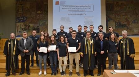 Στη αρχική φωτογραφία διακρίνονται από αριστερά: Ο Πρόεδρος του Τμήματος Μηχανολόγων Μηχανικών του ΑΠΘ, Καθηγητής Παναγιώτης Σεφερλής, ο Καθηγητής του Τμήματος Μηχανολόγων Μηχανικών του ΑΠΘ, Δημήτριος Βλάχος, ο Πρύτανης του ΑΠΘ, Καθηγητής Περικλής Α. Μήτκας, το μέλος Ειδικού Εργαστηριακού Διδακτικού Προσωπικού (ΕΔΙΠ) του Τμήματος Μηχανολόγων Μηχανικών ΑΠΘ, Γεώργιος Περκουλίδης, και ο Κοσμήτορας της Πολυτεχνικής Σχολής του ΑΠΘ, Καθηγητής Κωνσταντίνος Κατσιφαράκης, με τη φοιτητική ομάδα Panther Racing AUTh (2η θέση στον 5ο Διεθνή Διαγωνισμό MotoStudent V, Ισπανία).