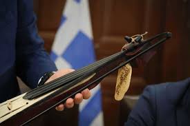Μία ποντιακή λύρα χάρισε στον Πρωθυπουργό Αλέξη Τσίπρα, η πρόεδρος της Πανελλήνιας Ομοσπονδίας Ποντιακών Σωματείων (ΠΟΠΣ) Χριστίνα Σαχινίδου, κατά τη διάρκεια της συνάντησης που είχε με εκπροσώπους των ποντιακών οργανώσεων και φορέων του χώρου, στο γραφείο του πρωθυπουργού στο ιστορικό κτίριο που στεγάζεται το υφυπουργείο Εσωτερικών, τομέας Μακεδονίας – Θράκης, το μεσημέρι του Σαββάτου 18 Μαΐου 2019, παρουσία υπουργών, βουλευτών και υποψηφίων ευρωβουλευτών.
