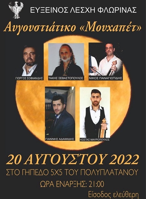 Κοντά στην παράδοση θα βρεθεί για μία ακόμη φορά, η Εύξεινος Λέσχη Φλώρινας η οποία προσκαλεί τα μέλη και τους φίλου της, αλλά και τους κάτοικους της Μακεδονίας να διασκεδάσουν όλοι μαζί στις 20 Αυγούστου 2022 σε ένα Αυγουστιάτικο «Μουχαπέτ», στις 9 το βράδυ, στο μικρό γήπεδο του Πολυπλάτανου Φλώρινας, με ελεύθερη είσοδο για το κοινό.