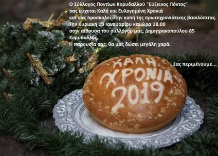 Περισσότερα: Κοπή βασιλόπιτας το 2019, από το σύλλογο Ποντίων Κορυδαλλού «Εύξεινος Πόντος»