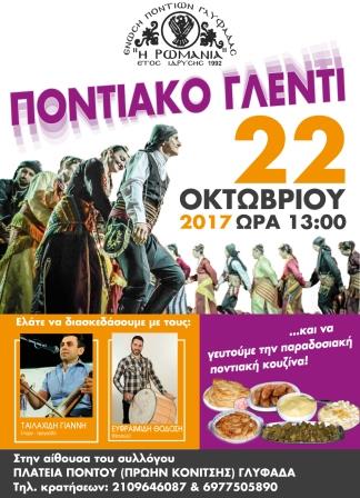 Το πρώτο γλέντι της νέας περιόδου, πραγματοποιεί η Ένωση Ποντίων Γλυφάδας «Η Ρωμανία», και προσκαλεί τα μέλη και τους φίλους του συλλόγου να πάρουν μέρος.