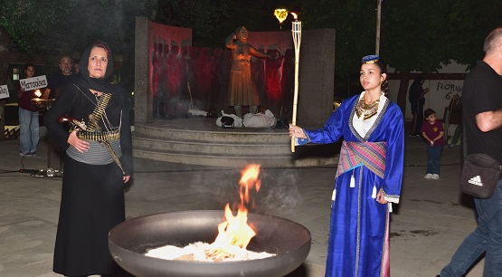 Το μνημείο της Γενοκτονίας των Ποντίων στην Πλατεία του Αγίου Κωνσταντίνου Αγρινίου και τα παιδιά του Ποντιακού Συλλόγου «Δημήτρης Ψαθάς» με τα κεριά στο δρώμενο των χαμένων πατρίδων (φωτ. Μιχ. Νίνογλου)