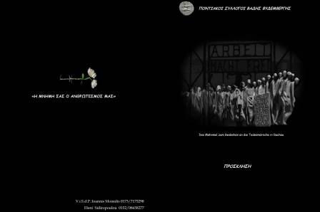 Η επίσκεψη των ποντιακών συλλόγων της Βάδης Βυδεμβέργης στο Νταχάου θα γίνει την Κυριακή 29 Οκτωβρίου 2017, στις 12 το μεσημέρι στο Στρατόπεδο συγκεντρώσεων KZ – (Gedenkstratte Dahcaou. Alter Romer str. 75, D-85 221).