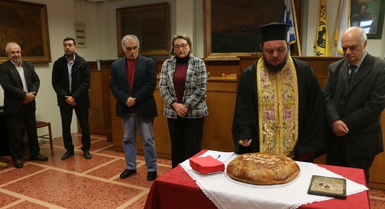 Στην εκδήλωση κοπής της βασιλόπιτας της Ευξείνου Λέσχης Θεσσαλονίκης την ευλόγησε ο εκπρόσωπος του Παναγιωτάτου Μητροπολίτη Θεσσαλονίκης κ. Φιλοθέου ο Αρχιμανδρίτης πατήρ Χρυσόστομος.